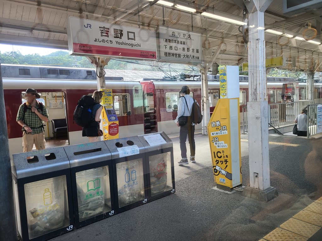 写真は吉野口駅です。近鉄吉野線と同じホームで乗り換えができます。改札なしです。おぼ同じ鉄道会社のような駅の形態です。