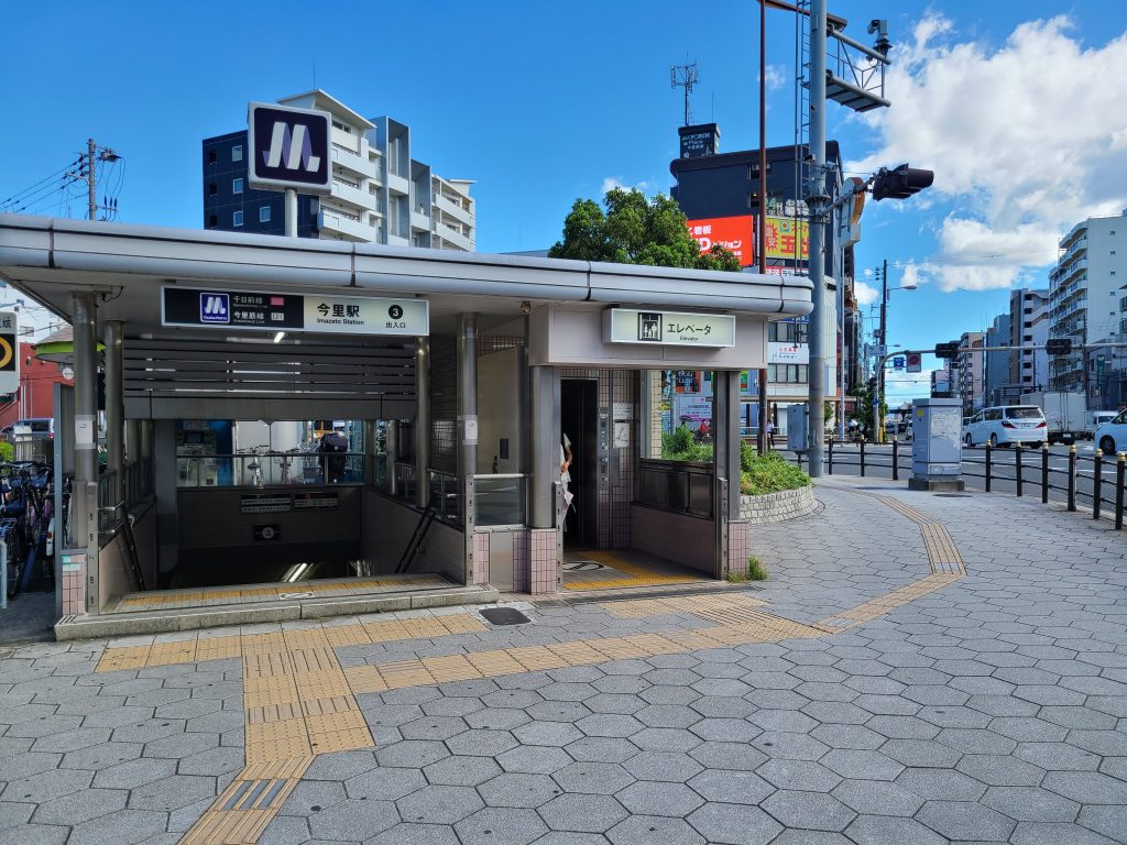 今里筋線の北の終点、井高野駅の出入口です。井高野団地のど真ん中に位置しています。