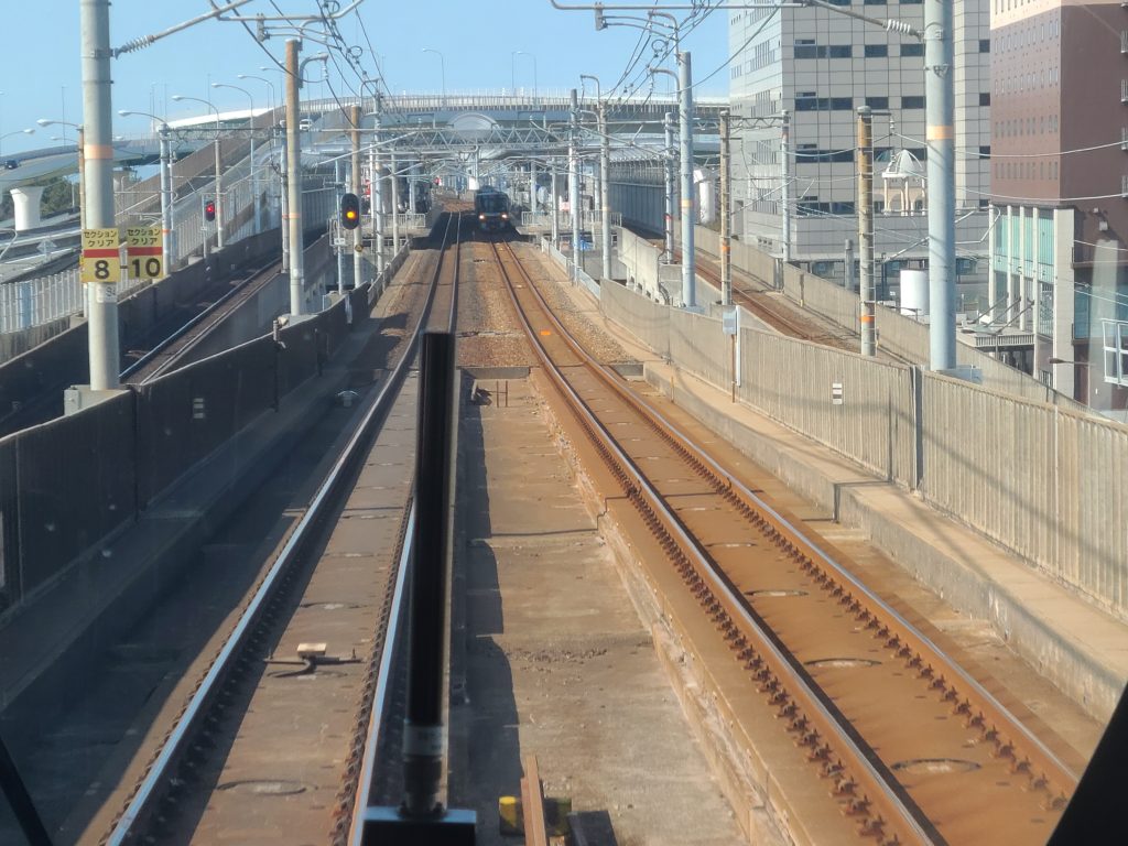 まもなく、りんくうタウン駅です。両サイドから南海電車の線路が近寄ってきました。