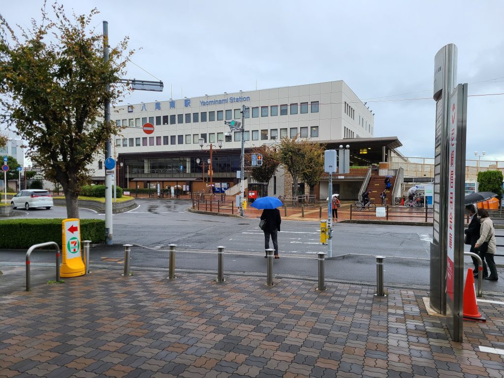 駅のすぐ横には谷町線の車両基地があるのと、八尾空港が近くにあります。写真は八尾南駅の駅舎です。