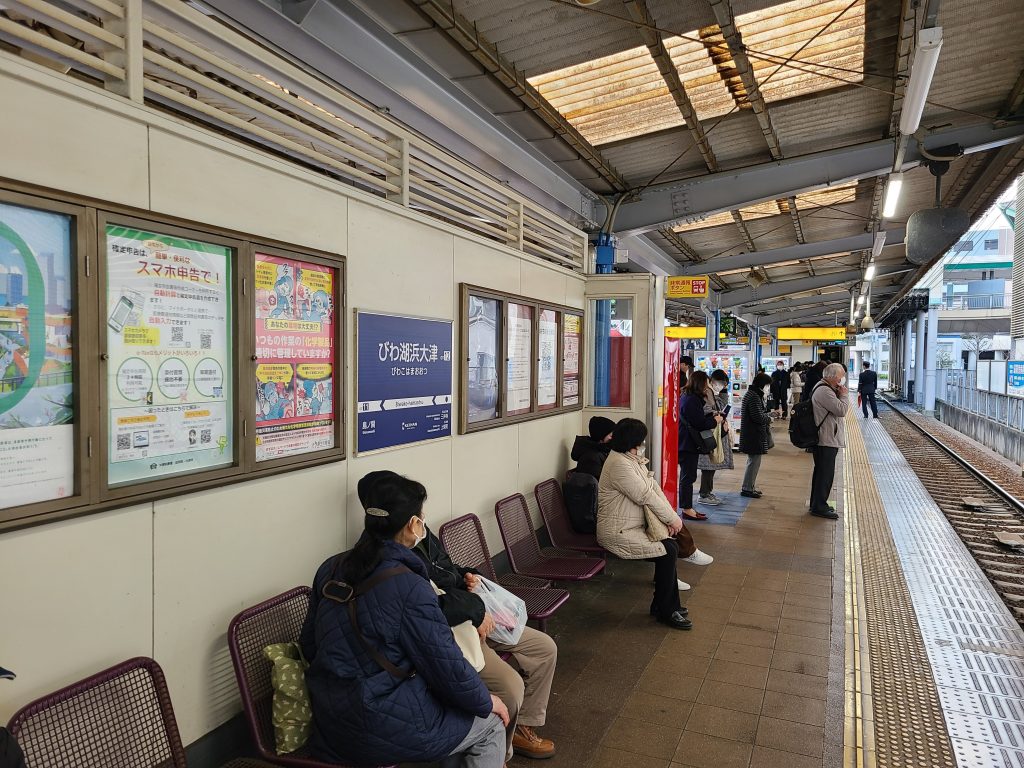 路面電車区間が終わると、京津線の終点:びわこ浜大津駅に到着します。