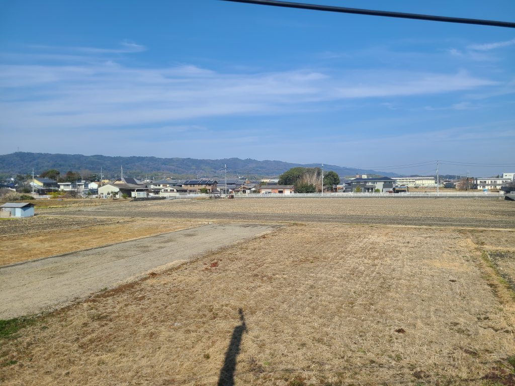 奈良盆地の広がりを感じられる区間。田園風景と遠くの山並みが美しいです。