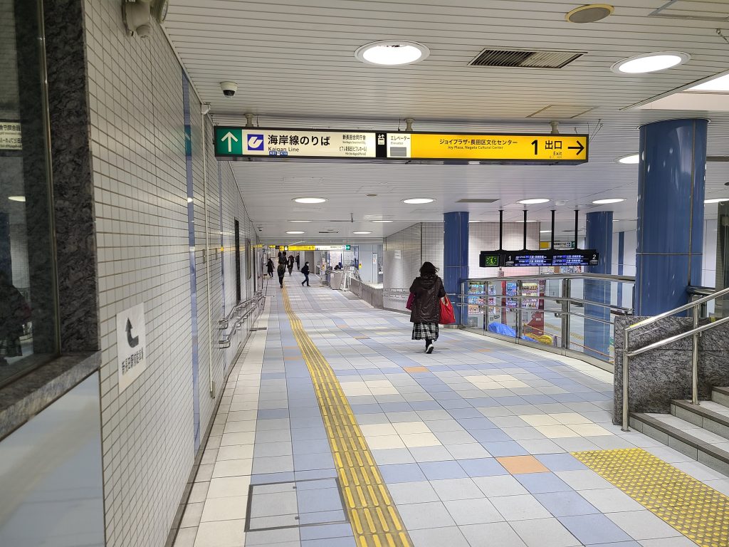 写真は新長田駅構内の海岸線のりばにつながる通路です。