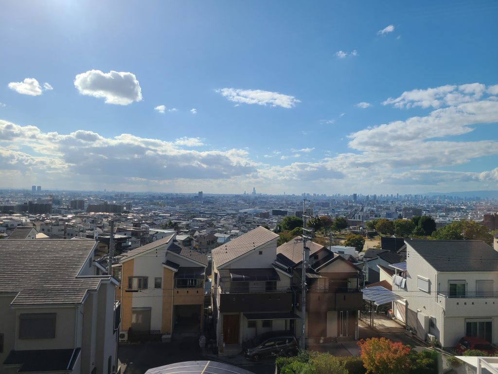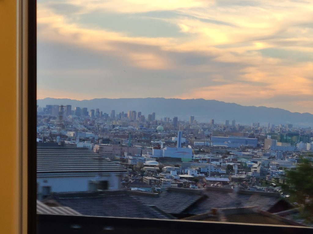 生駒山を登る途中、西側の車窓からは大阪平野の街並みが一望できます。
