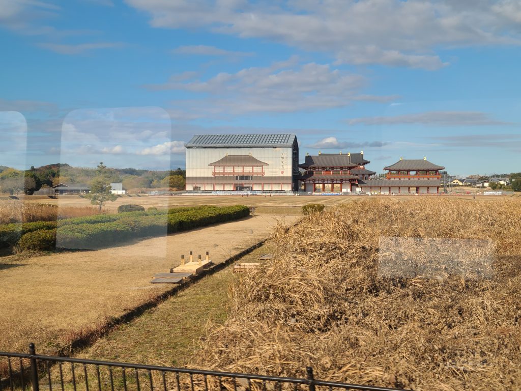 大和西大寺ー新大宮間に見える平城宮跡です。大阪方面と京都方面から近鉄奈良駅へ向かう時にみることができます。