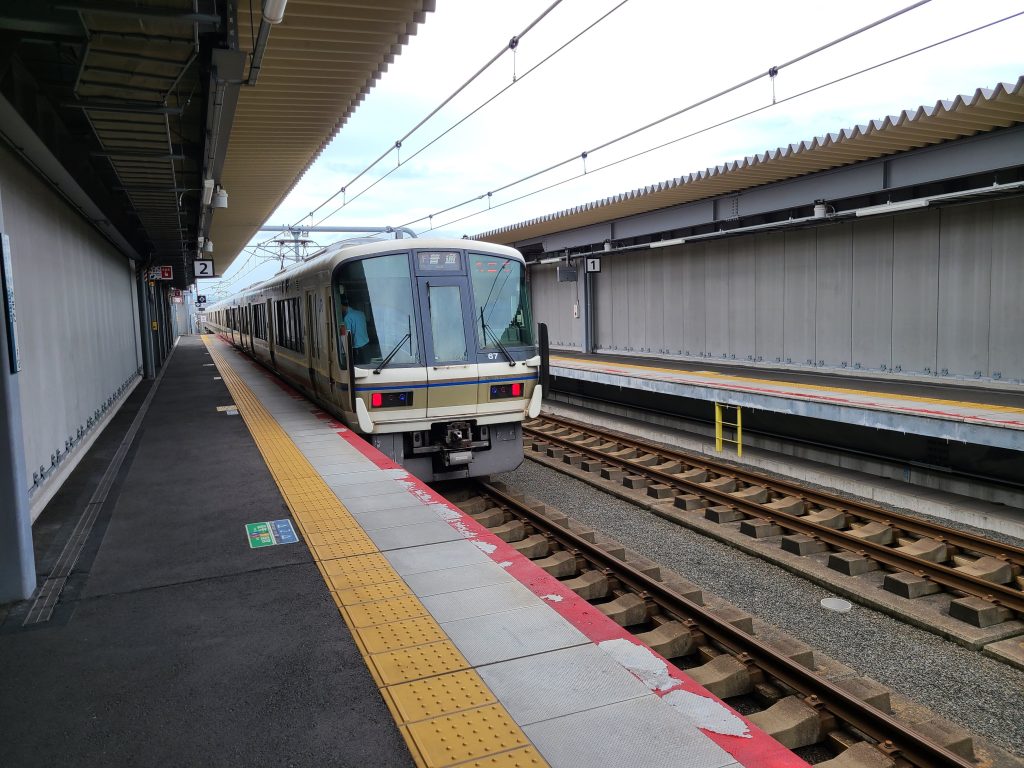 この写真はJR王寺駅(奈良県)で撮影した、おおさか東線経由の直通快速:新大阪ゆきです。写真撮影時はまだ大阪駅まで直通していませんでした。