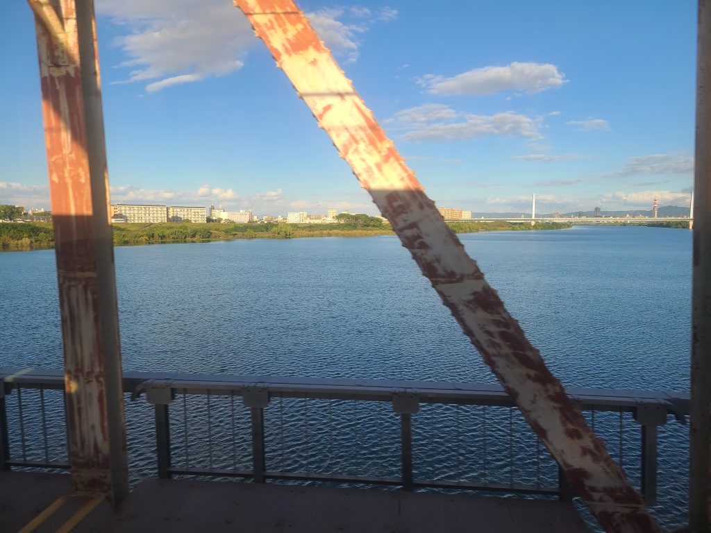 沿線最大のハイライト「赤川鉄橋」へ。貨物線時代の面影を残すトラス橋を渡りながら、淀川の雄大な流れが車窓いっぱいに広がる瞬間は、思わず息をのむ美しさです。