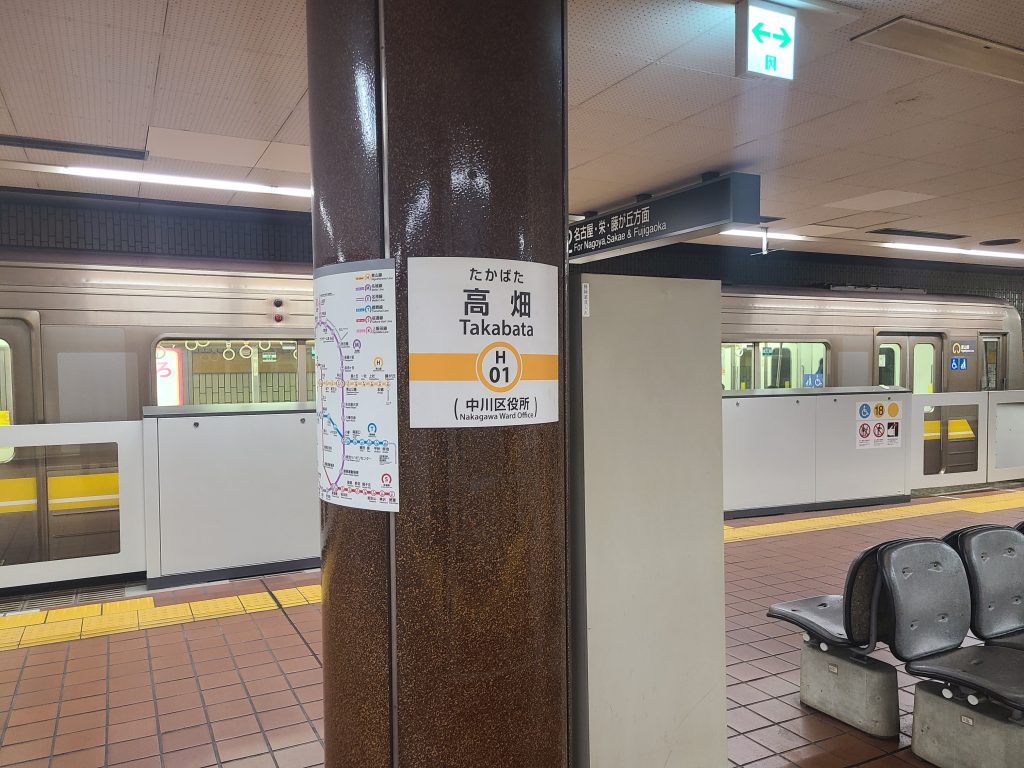 西側の始発駅:高畑駅です。このあたりは次の八田駅(JR・近鉄)があり、かつ名古屋駅に直結しているバス路線も多くあり、東山線としては静かな雰囲気です。