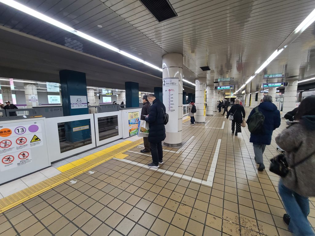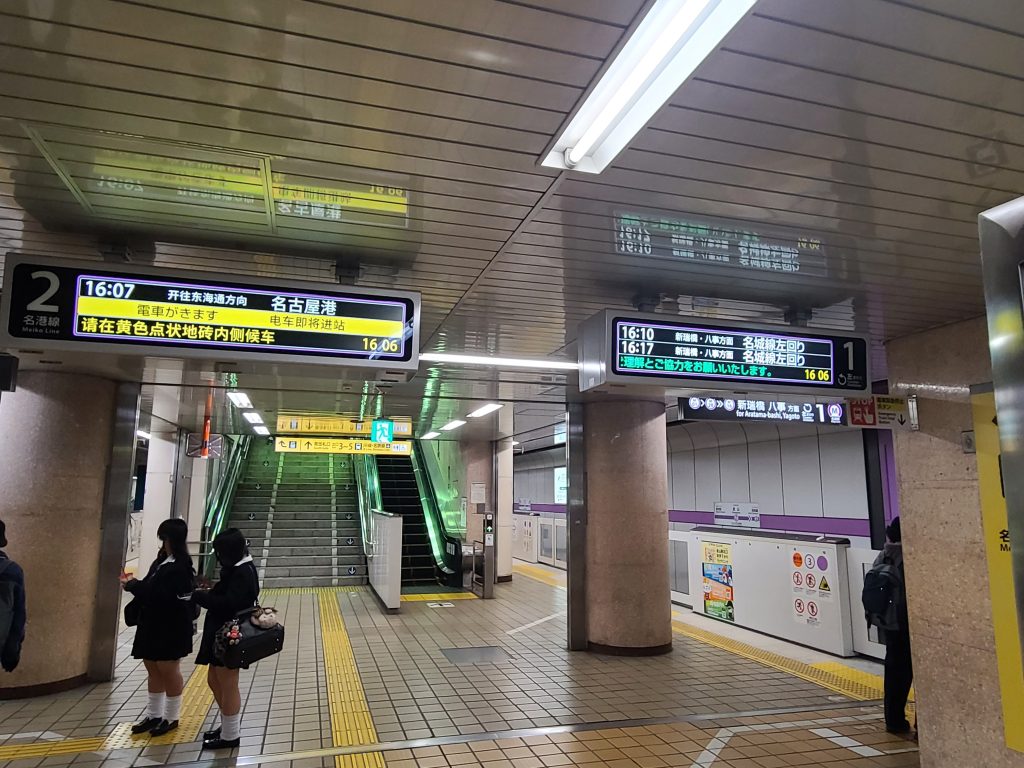 写真は金山駅のコンコースです。写真左奥が地下鉄乗り場への階段・エスカレーターです。