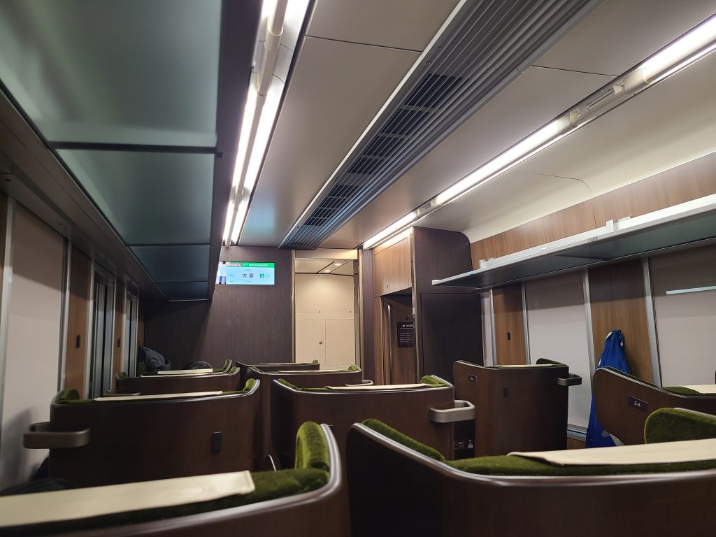 座席は2列+1列の3列配置で、一般車両よりも座面幅と足元のスペースが広く、リクライニングに合わせて座面が連動する構造を採用しています。頭部の側面形状やパーテーションにより、周囲の視線を気にせず過ごせる“プライベート感”が魅力です。さらに、1席ごとに窓が配置されているため、景色を独り占めできるのも嬉しいポイント。