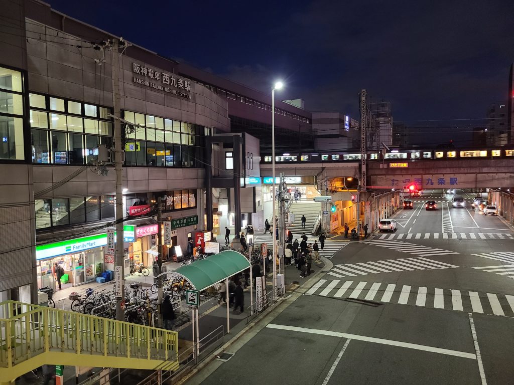 この西九条駅は、写真のとおりJR大阪環状線の西九条駅(写真右奥にJRの電車がみえます)と乗り換えができます。
