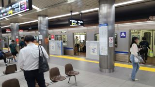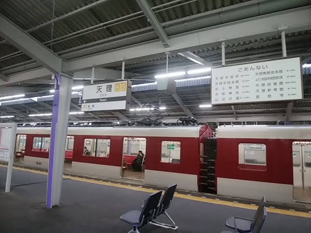 終点:新王寺駅です。JR大和路線・近鉄生駒線と乗り換えできます。左側が新王寺に停車する列車、右側の写真が出入口方向にむかって撮影したものです。
